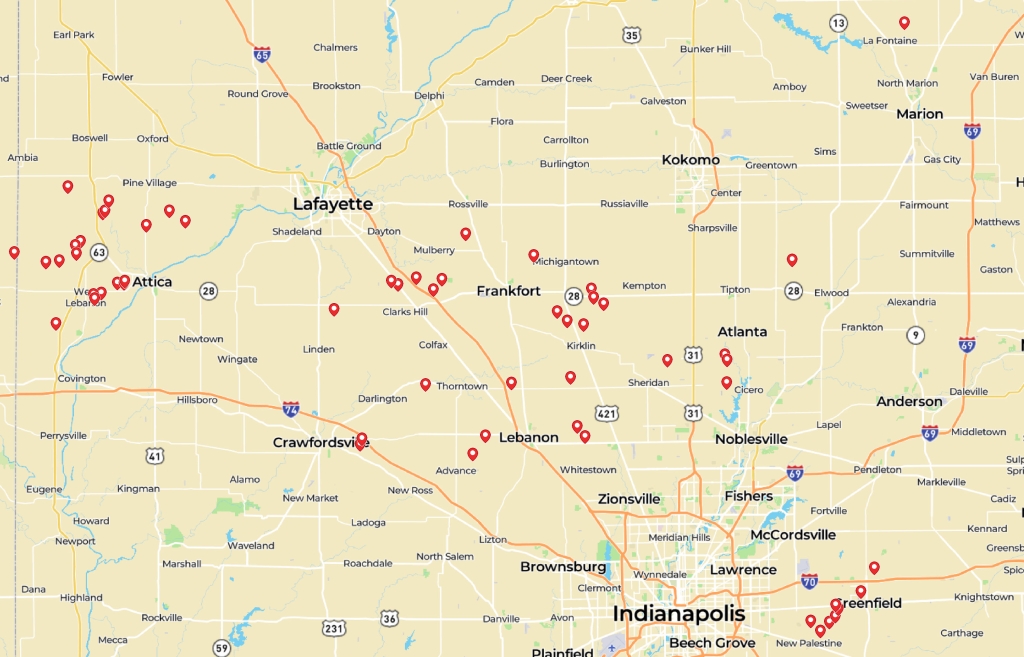 Of those total Halderman managed acres, the Clark Team manages 23,230+ acres throughout Central Indiana indicated by the anchor points below.
